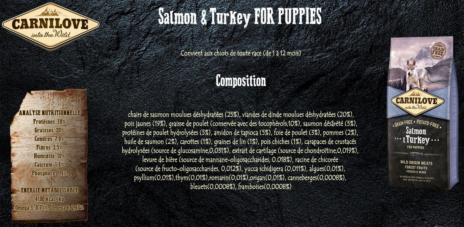 Ce type d'alimentation est constituée par les aliments dits humides comme les pâtées en boîtes ou en barquettes et par la nourriture sèche comme les croquettes. A l'heure actuelle, ce type d'alimentation est plébiscitée par 80% des propriétaires d'animaux de compagnie. A condition de bien savoir choisir ses produits, ce type d'alimentation est très pratique, offre de bonnes garanties en termes de composition et couvrent parfaitement les besoins nutritionnels des chiens de compagnie en fonction des marques, je précise tout type de croquettes ne sont pas forcément bonne pour les chiens je fais référence par exemple aux croquettes de super-marchés, certaines croquettes ou pâtés sont a proscrire. Oz fait parti de ces nombreux chiens que l'on peut appelé "domestique" à être à l'alimentation industrielle, pour cause de gains de temps et de budget parce que oui j'aimerais que mon chien passe au barf mais cela nécessite un budget plus conséquent pour ma part, plus de temps pour préparer correctement les rations mais aussi également plus de stockage. Oz est donc depuis ses 5 mois environ aux croquettes Carnilove Puppy au saumon, pour ma part Oz n'a eu aucun soucis de digestion au niveau de cette marque de croquettes, ses selles sont bien moulées et régulière et de plus il en raffole. Je précise je ne suis pas vétérinaire, ni même nutritionniste, un chien n'est pas un autre, il se peut que les croquettes de cette marque convienne parfaitement a Oz mais pas a votre chien.